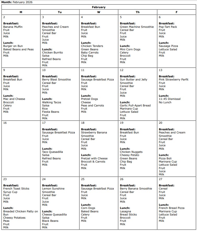 • Parent Resources - February 2026: Breakfast & Lunch Menu